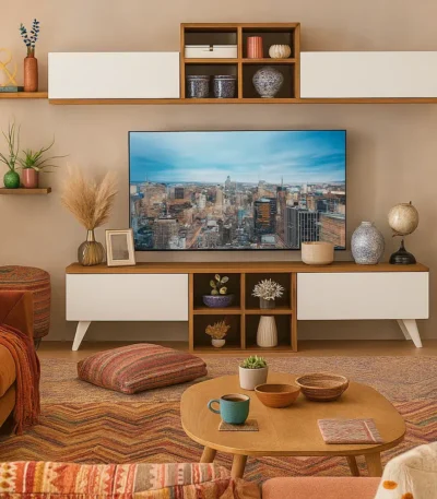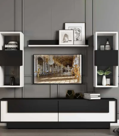ترابيزة تليفزيون وترابيزة قهوة مع أرفف حائط