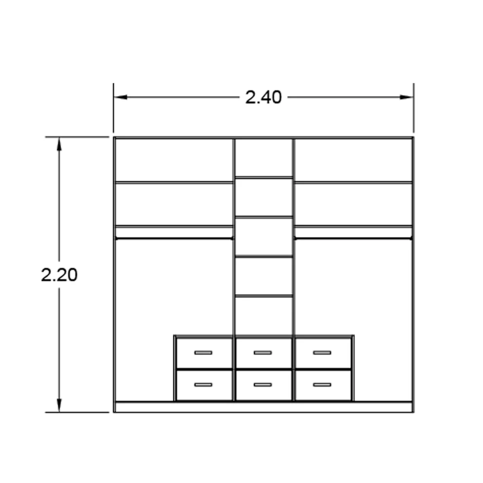 المقاسات: العرض 240سم – العمق 50سم – الإرتفاع 220سم